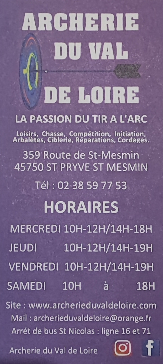 Nous sommes heureux de notre partenariat avec l'archerie du val de Loire qui nous permettra de profiter de réductions ainsi qu'à tous nos archers licenciés.