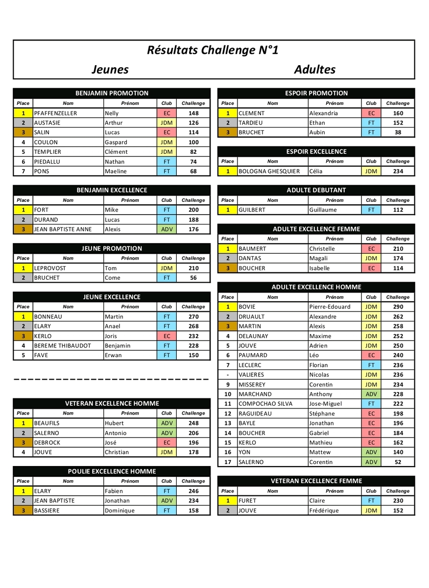 Résultats challenge 1